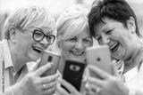 Group of senior women using smartphones together