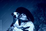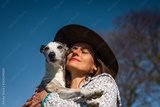 Happy woman love her dog. Friendship between pet owner and her whippet