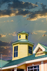 A Yellow and Green Wood and Metal Cupola in Nassau Bahamas