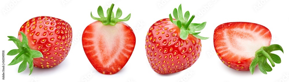 Strawberry collection Clipping Path. Strawberry isolated on white background. Big set fresh strawberry fruits. Professional studio macro shooting