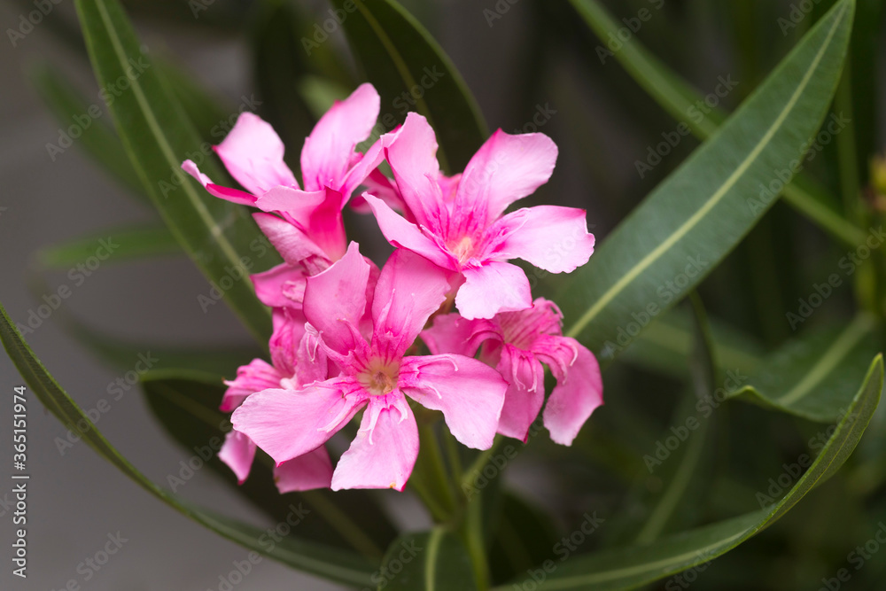 Beautiful Nerium Oleander flower plant blossom in tropical garden.