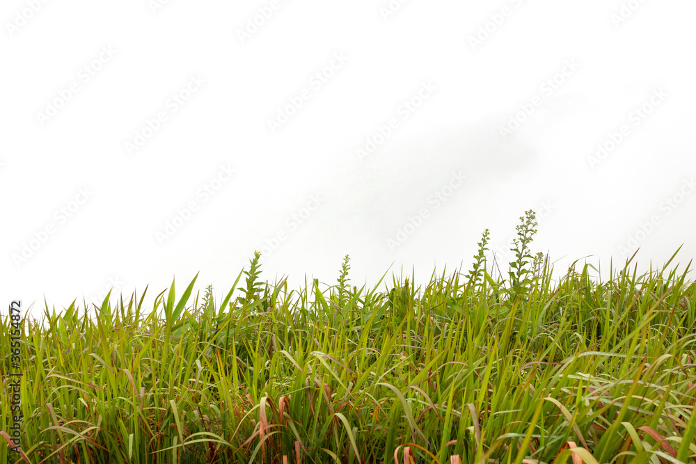 Green grass borders. High green fresh grass isolated on white background.