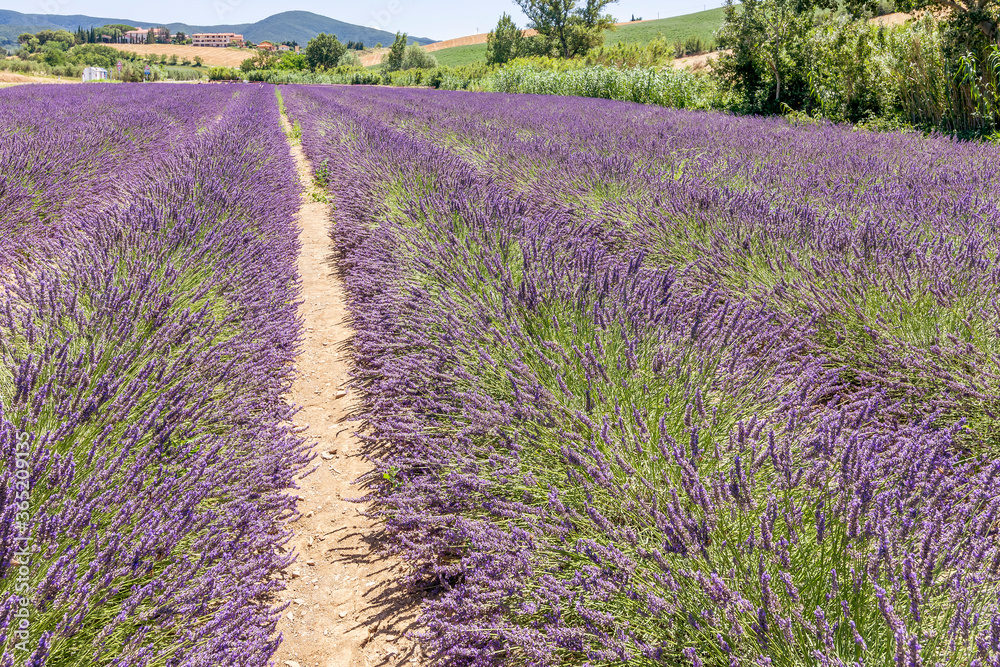 Beautiful lavender field in the Tuscan countryside near the village of Santa Luce, Italy