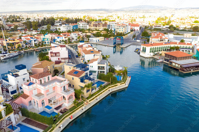 Aerial view above residential houses of Limassol Marina. Cyprus