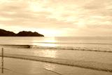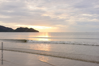 Early morning sea view. The sunrise view against the golden yellow sky