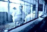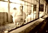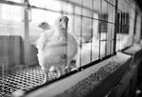 broiler chickens in cages on the background of a poultry farm and mixed feed