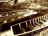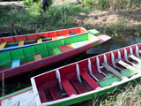 Colorful fishing and Taxi boat with water plants in lake, Wetland at Khao Sam Roi Yot National Park, Thailand