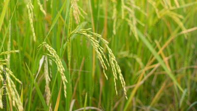 Rice leaves with ears, looks fertile with sufficient irrigation and adequate fertilizer