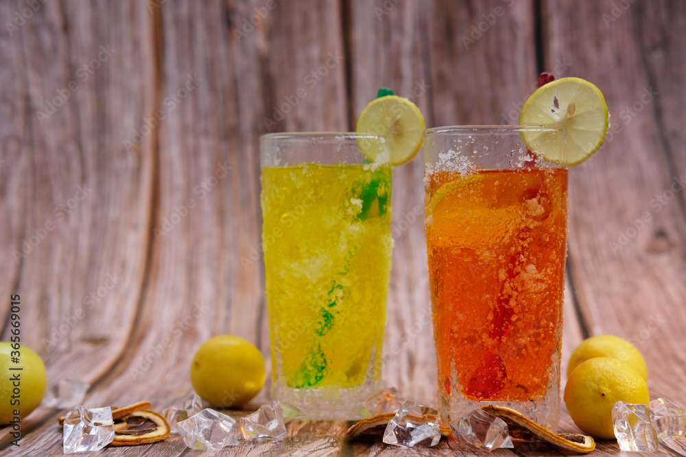 Cool drink and cocktails on table background and space for text