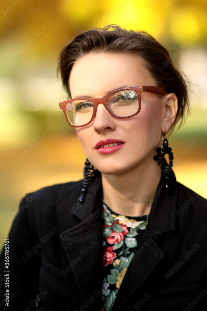 Beautiful young woman in autumn scenery. Outdoor fashion shot
