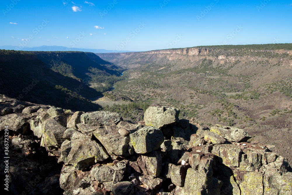 Expansive view of the Rio Grande looking south at Rio Grande del Norte National Monument in New Mexico