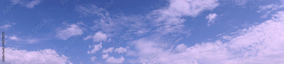 Panoramic view of the sky. Blue sky with white clouds. Abstract sky background.