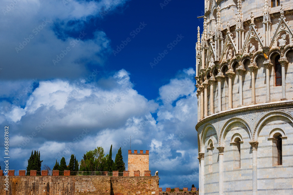 Pisa famous medieval monuments, baptistery and ancient city walls, now open to the public