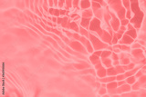 Closeup of pink transparent clear calm water surface texture with splashes and bubbles. Trendy abstract summer nature background. Coral colored waves in sunlight.