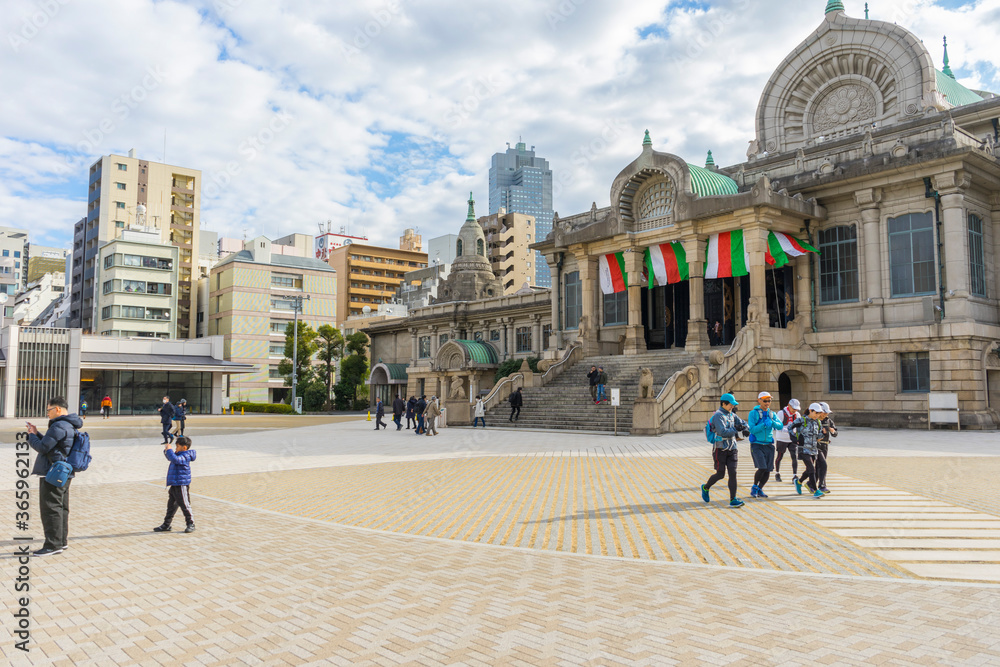 People come to make a pray at Tsukiji Hongwan-ji temple in Tokyo, Japan