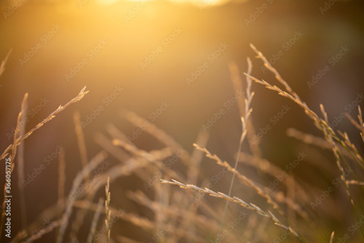 Beautiful background. Vanilla background. Background at sunset. Blurred background with nature and spikelets. Orange nature background. Place for text