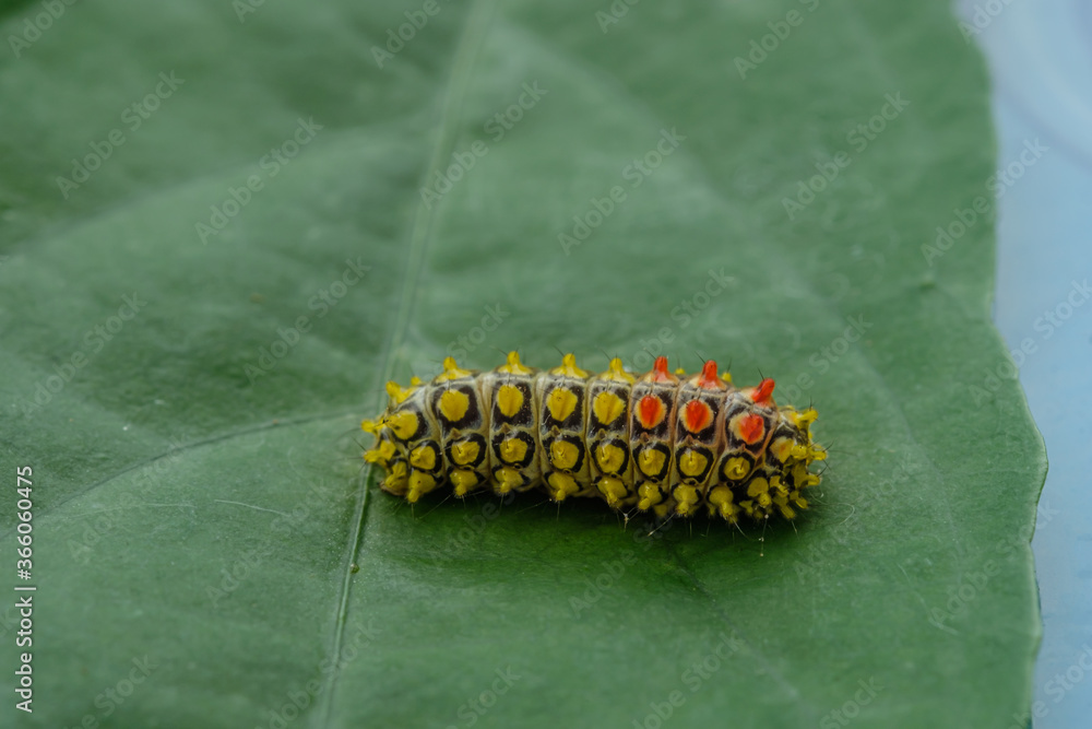 Yellow worms with beautiful on green leaf background
