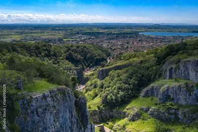 Aerial view of Cheddar Gorge, Mendip Hills, Somerset, England