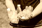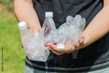 Man holding crushed plastic bottles in his hands, Eco friendly lifestyle, Zero Waste