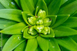 Lily, non-blooming flower bud with arranged leaves, Natural green background
