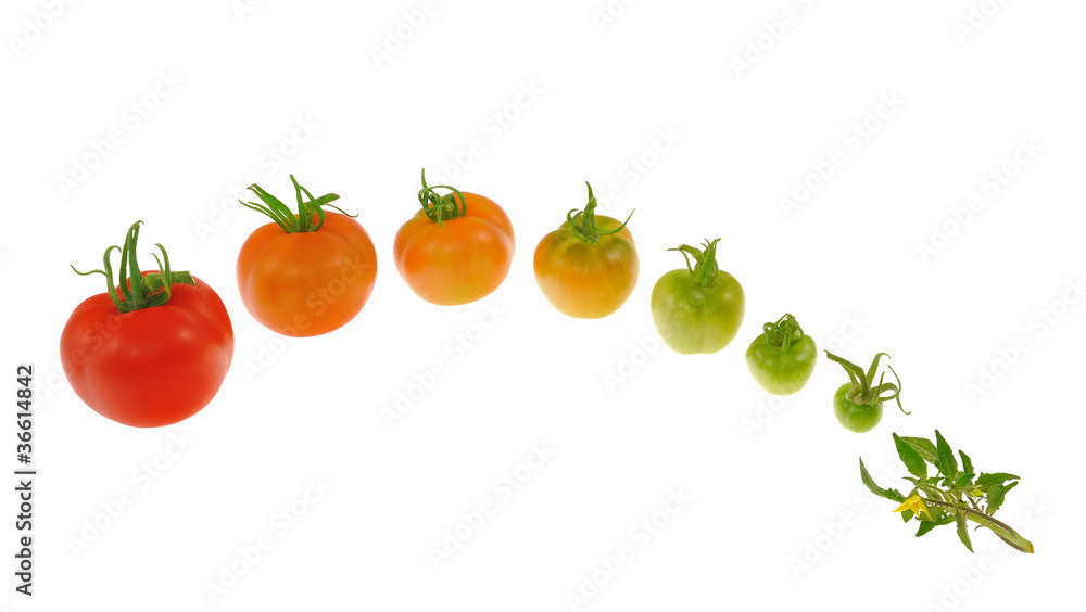 Evolution of red tomato isolated on white background