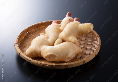 Fresh ginger on a black background