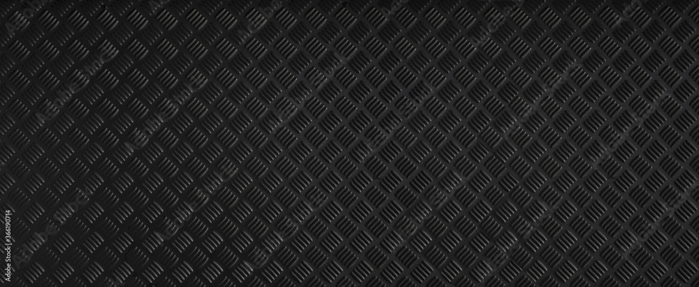 Panorama Black dark grey Checker Plate abstract floor metal stanless background stainless pattern surface. wild picture.