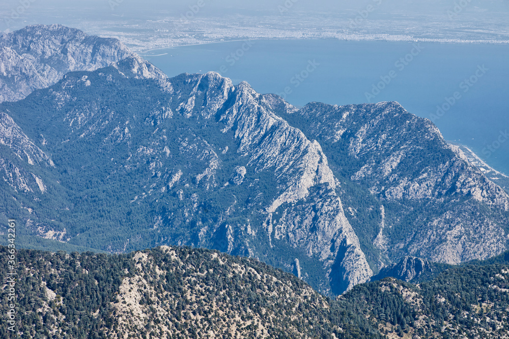 View from Tahtali Mountain to the Mediterranean Sea in Turkey