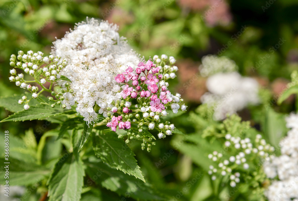White and pink valerian flowers in garden