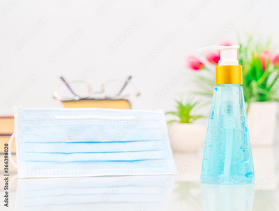 Alcohol gel bottle sanitizer hand and Medical face masks
