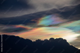 Beautiful Iridescent Pileus cloud in the evening.Rainbow cloud background.