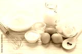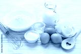 Assortment of basic baking ingredients for cake, muffins or pancakes