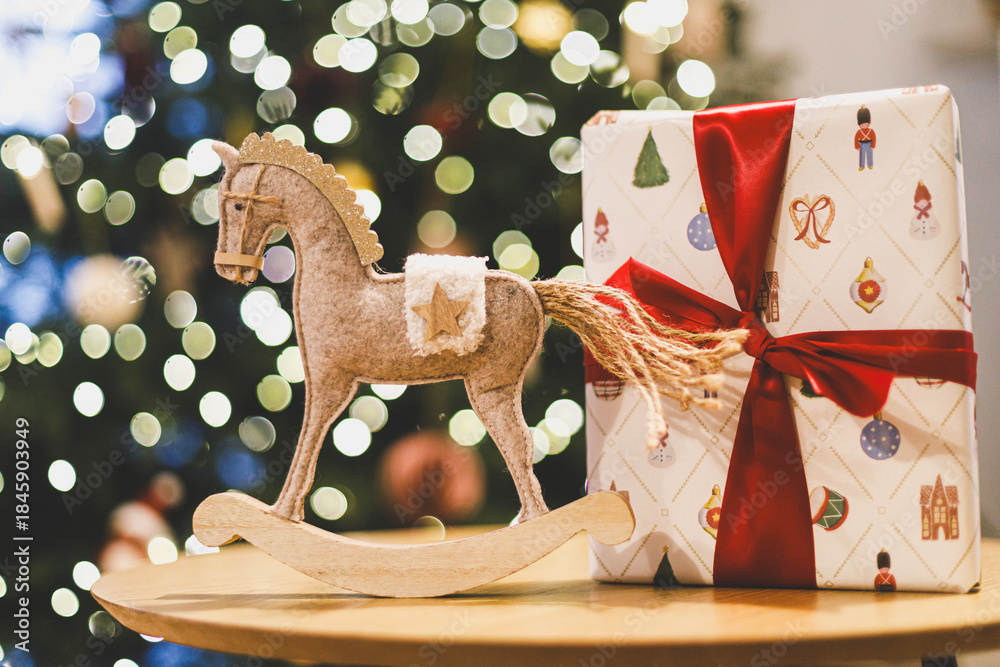 Young male volunteer in mask gives an elderly woman boxes with food near her house. Son man helps a single elderly mother. Family support, caring. Quarantined, isolated. Coronavirus covid-19. Donation