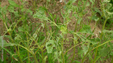 Sunflower common leaves spanish slug pest Arion vulgaris snail parasitizes on Helianthus annuus leaf vegetables, cabbage lettuce moving in the garden, eating ripe plant crops