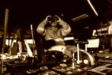 Filipino deck Officer on bridge of vessel or ship wearing coverall. He is looking through binoculars. COLREG navigaton watch at sea