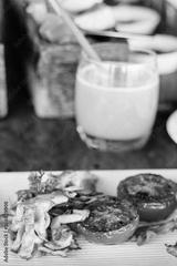 Breakfast tomatos and chicken slices