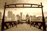 Tianjin, China - Jan 16 2020: Tianjin pedestrian wooden bridge over Haihe river in Nankai district