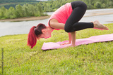 The girl on the nature in a park is engaged in yoga. Healthy lifestyle.