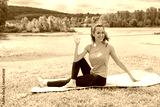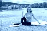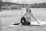 The girl on the nature in a park is engaged in yoga. Healthy lifestyle.