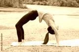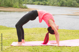 The girl on the nature in a park is engaged in yoga. Healthy lifestyle.