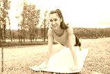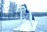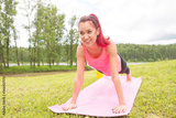 The girl in the nature in a park goes in for sports. Healthy lifestyle.
