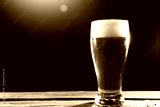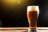 Cold tasty beer on hot summer day. Glass of beer on wooden table on black background