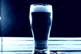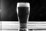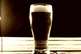 Cold tasty beer on hot summer day. Glass of beer on wooden table on black background