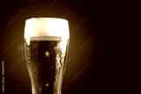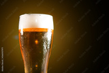 Cold tasty beer on hot summer day. Glass of beer on wooden table on black background