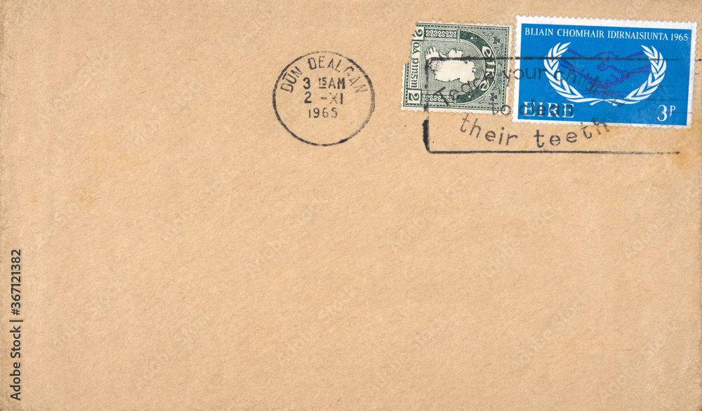 vintage retro alt old irland ireland briefmarke stamp gestempelt used gelaufen Slogan zähneputzen brush teeth