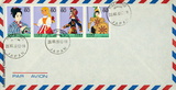 vintage retro old alt airmail luftpost briefmarke stamp gestempelt used puppen dolls Briefumschlag envelope Machino Japan Nippon