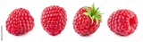 Raspberry isolated. Raspberries with leaf isolate. Raspberry with leaf isolated on white. Side view raspberries set.