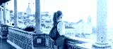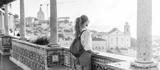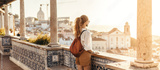 Person looking at breathtaking view of the city in Europe during the sunset