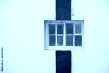 Yellow and blue strip wall and window close up