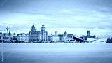 Letterbox crop of the Liverpool skyline in monochrome